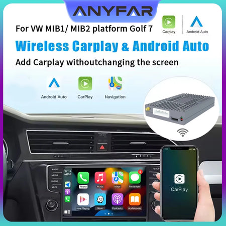 Upgrade your VW experience with the VW Golf 7 Wireless CarPlay Android Auto Module for OEM Retrofit from ANYFAR. This retrofit CarPlay and Android Auto kit delivers an authentic OEM feel by preserving your dash display and VW controls, while unlocking modern connectivity directly in your cabin. No messy wiring or dashboard cuts—just a seamless, factory-like upgrade that enhances every drive.