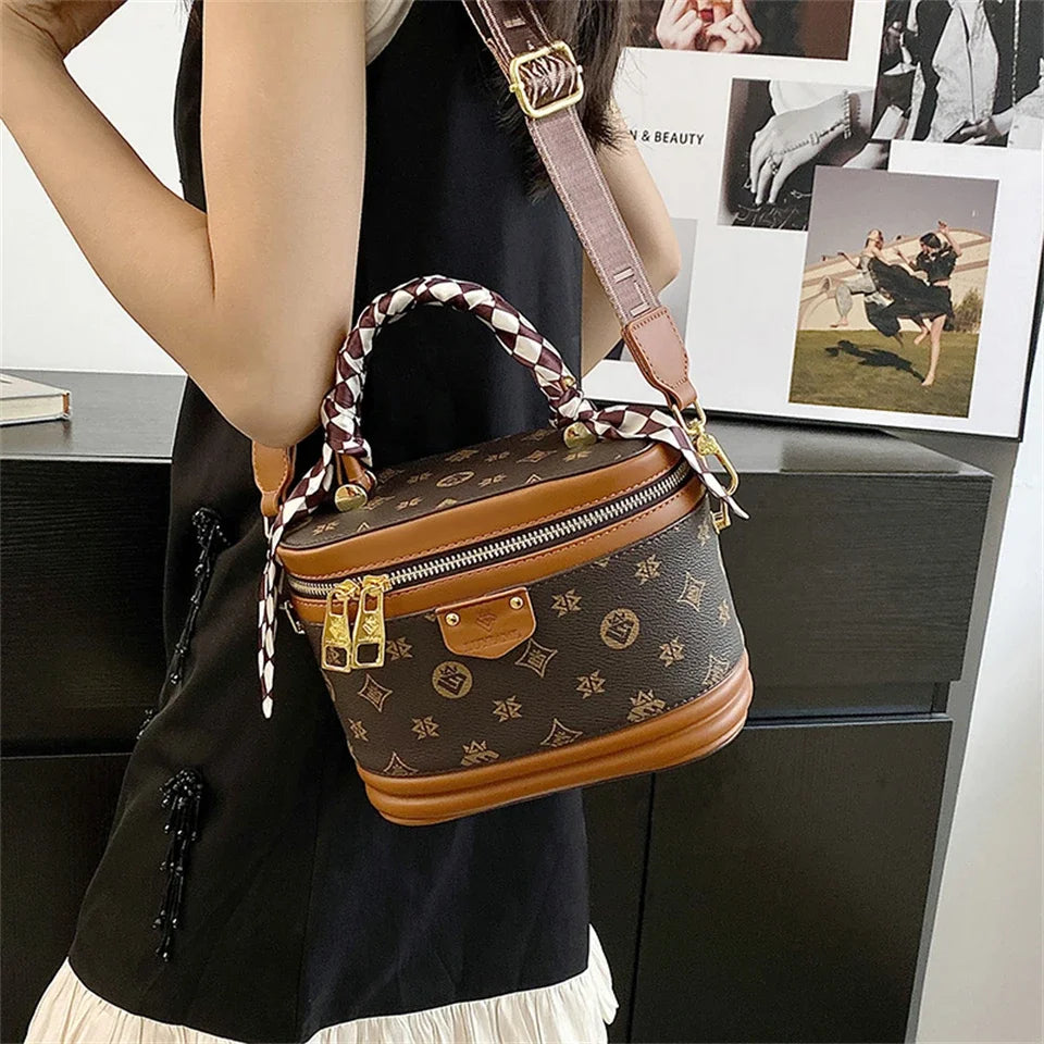 PU Leather Bucket Shoulder Bag for Women, Luxury Designer Handbag with Zipper, Interior Pockets