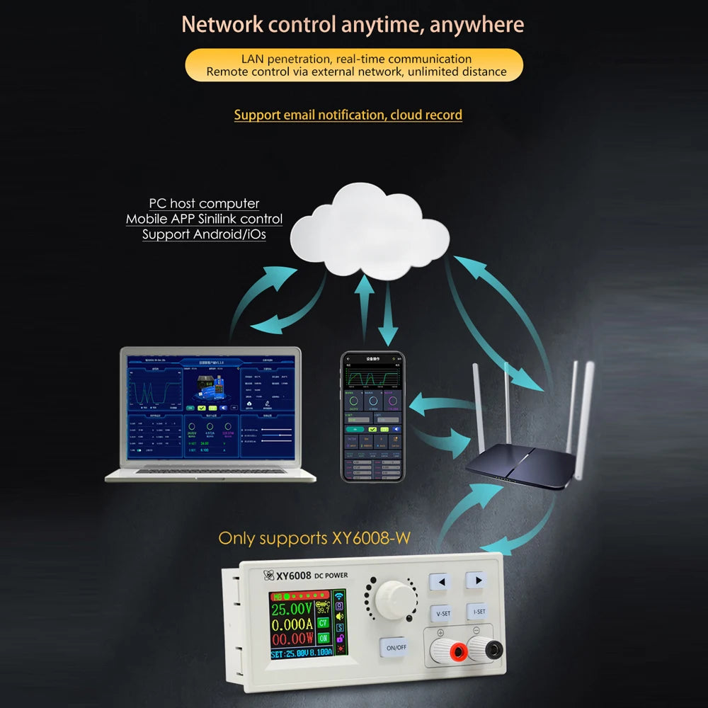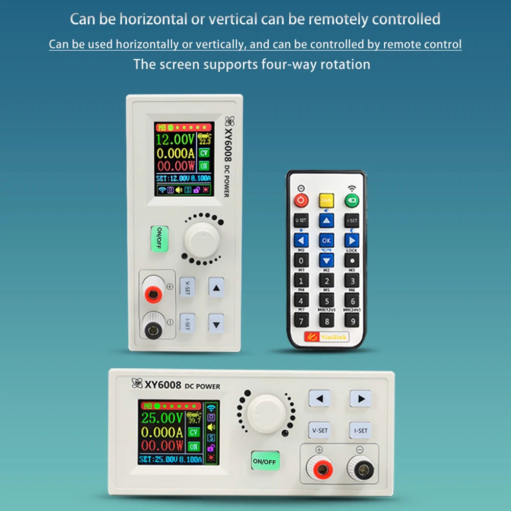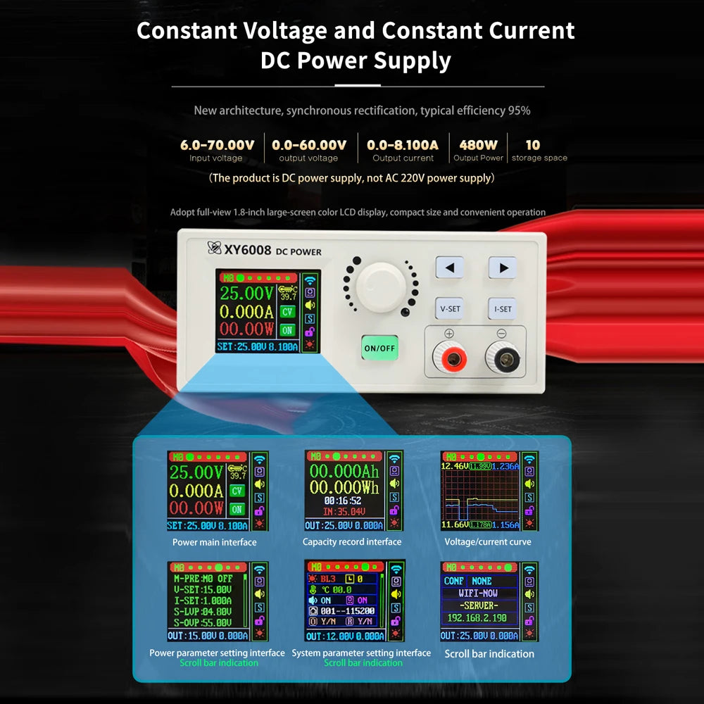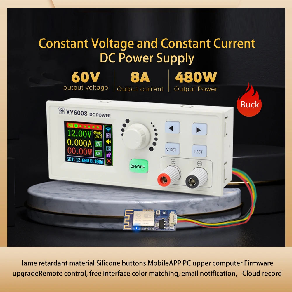 Meet the XY6008 XY6008-W DC Regulated Power 60V 8A Buck Converter—a compact, fully digital DC power supply designed for precise voltage control, reliable performance, and flexible operation in labs, workshops, and hobby setups. Built for stability, it delivers clean, adjustable output with a bright 1.8-inch color LCD that shows real-time voltage, current, and power. Choose XY6008 for essential voltage control or XY6008-W for advanced network connectivity and smart features.