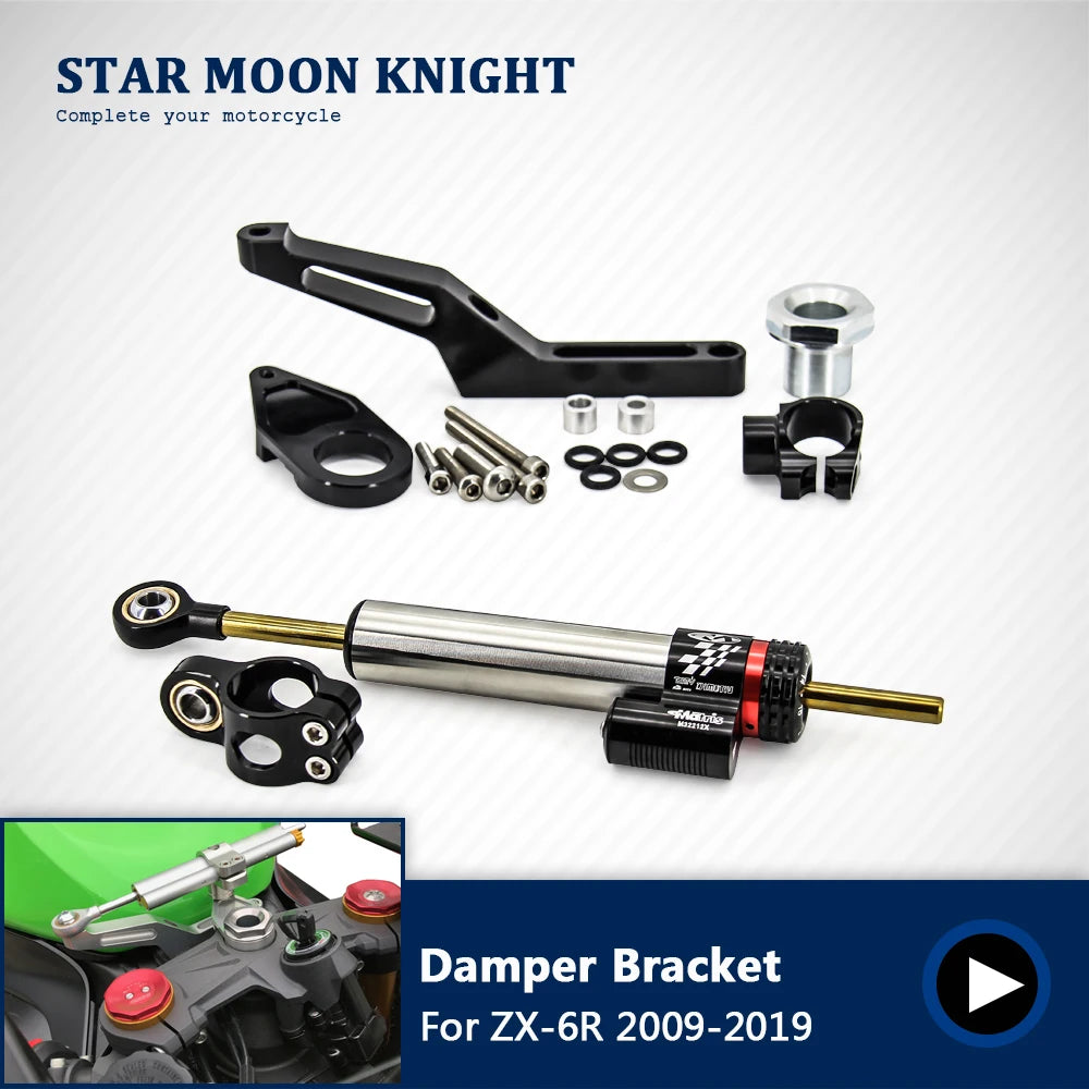 Kawasaki ZX6R CNC Machined Steering Damper Bracket Mount for ZX6R 2009 to 2019, Direct Fit
