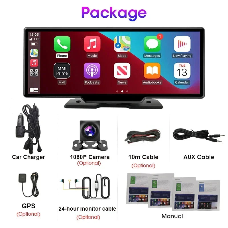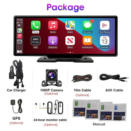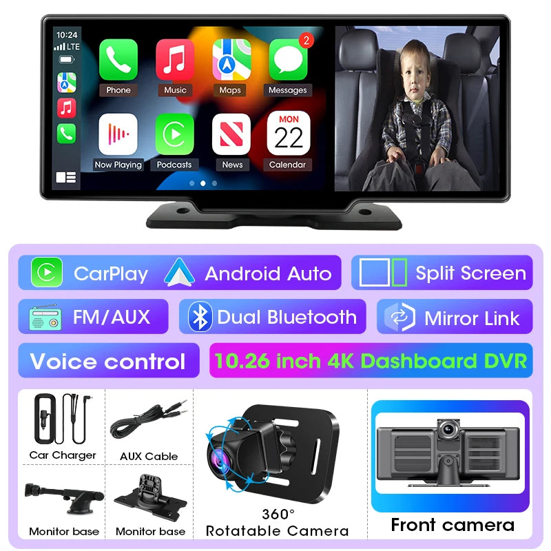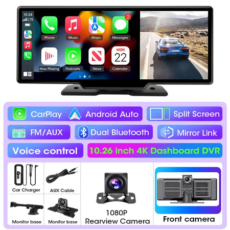 Melhore a sua experiência de condução com a Develuck Câmara DVR para Carro de 10,26 Polegadas com Dupla Lente. Este monitor espelho inteligente combina uma câmara frontal 4K cristalina com uma opção flexível de câmara traseira, oferecendo conectividade sem fios CarPlay e Android Auto, navegação GPS integrada e rádio FM Bluetooth. Substitui o seu espelho retrovisor tradicional por um ecrã IPS amplo 16:9, mantendo-o informado e no controlo enquanto se concentra na estrada. Quer procure ajuda precisa para estacionamento, vigilância em tempo real ou navegação sem esforço, esta câmara de tablier cobre todas as necessidades com uma interface estável e múltiplas opções de montagem que não bloqueiam a sua visão.