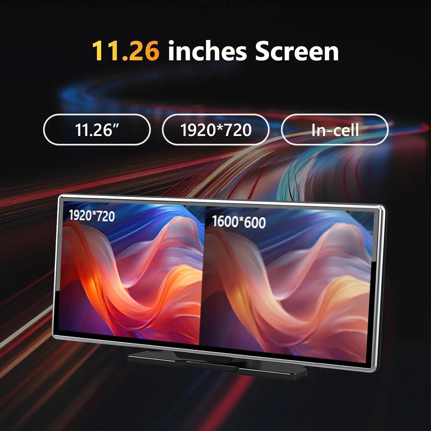 Câmara de Dash de 11.26 Polegadas 4K para Carro – Carplay e Android Auto Sem Fios com Lentes Duplas e Navegação GPS