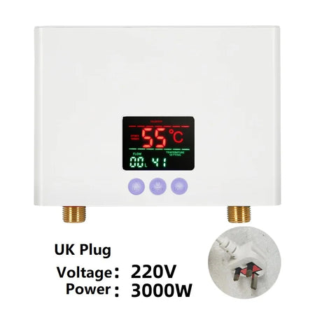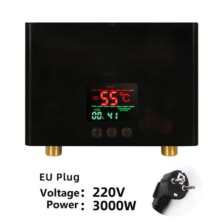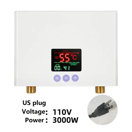 Experimente água quente instantânea com o Aquecedor de Água Instantâneo 110V/220V 3000W/5500W, uma solução compacta montada na parede para casas de banho e cozinhas. Este aquecedor de alta eficiência fornece água quente rapidamente, liga-se automaticamente quando a válvula abre e entra em modo de espera quando fechada, poupando água e energia. Duas opções de potência (3000W para verão e 5500W para inverno) e dois métodos de controlo (toque e remoto) permitem ajustar o desempenho às suas necessidades. Seguro, limpo e fácil de instalar, é uma atualização prática para casas modernas.