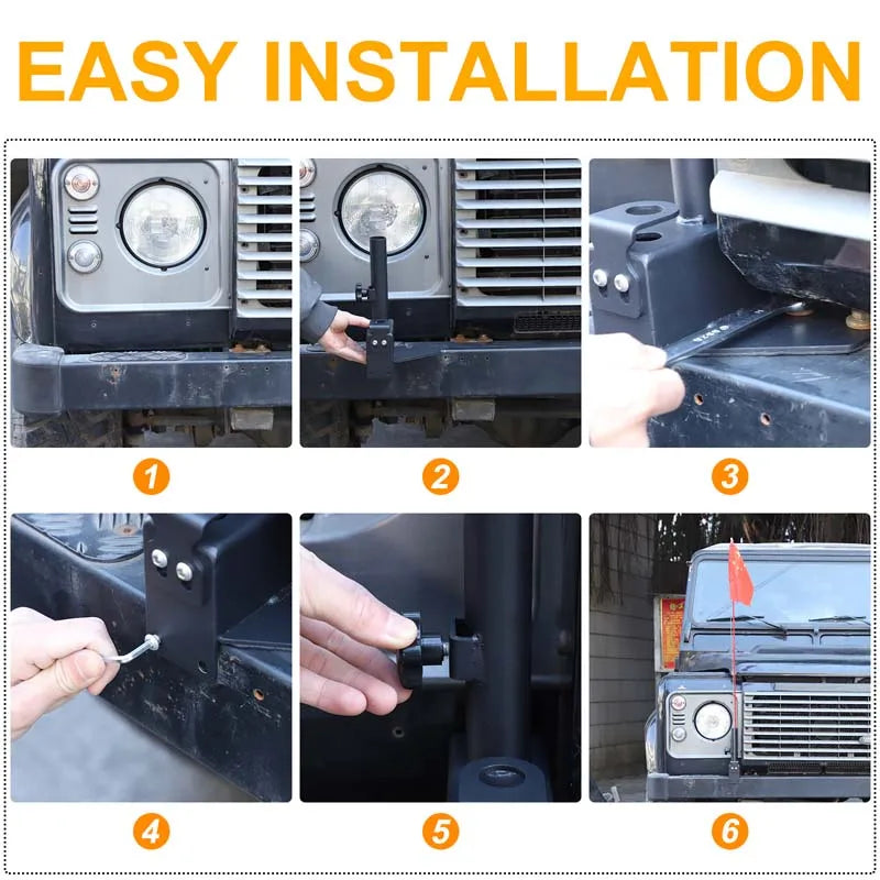 - A construção durável em aço carbono oferece suporte fiável para a sua antena enquanto resiste às exigências do uso fora de estrada.