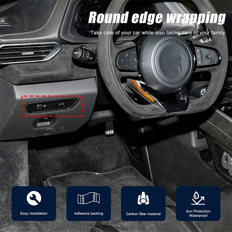 Melhore o detalhe interior do seu Lotus EMIRA com o Autocolante da Moldura do Interruptor da Mala em Fibra de Carbono Real. Fabricado em fibra de carbono real de alta qualidade, este acabamento de 1 peça traz um aspeto premium e desportivo à área da mala do EMIRA 2021–2023. Projetado para um ajuste preciso e fácil instalação, apresenta um adesivo forte de dupla face e é produzido numa fábrica certificada ISO9001 na China Continental.