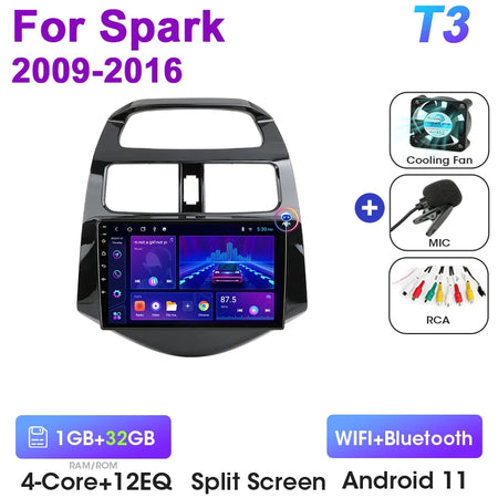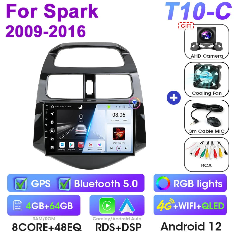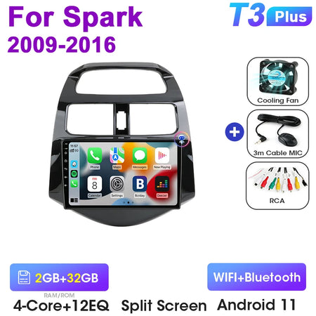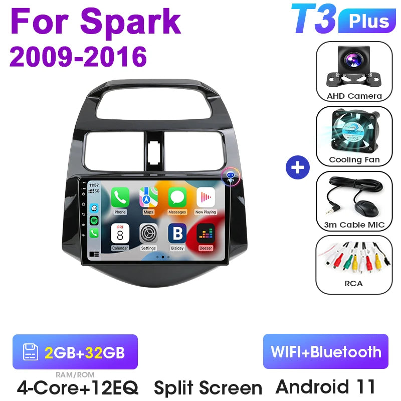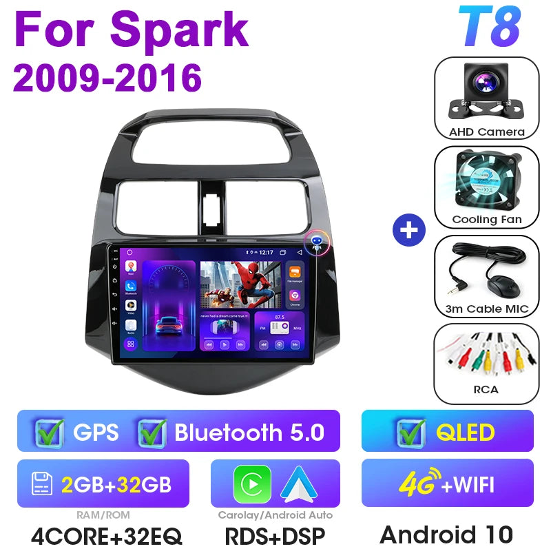 Estéreo de Carro para Chevrolet Spark Android 12 9 Polegadas GPS CarPlay Double DIN Ecrã Brilhante