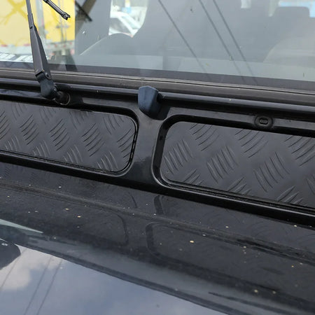- 2 x Painéis de acabamento inferior do para-brisas em alumínio preto para Defender 2004-2018 110/130