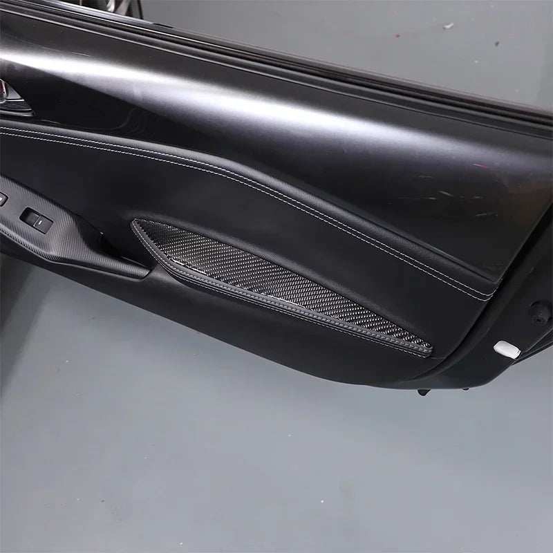 Eleve o interior do seu Mazda MX-5 com os Painéis de Descanso de Braço Interior em Fibra de Carbono Macia 2Pcs. Fabricados com um material estilo fibra de carbono macia, estes acabamentos decorativos trazem um aspeto premium e desportivo aos descansos de braço das portas, protegendo contra riscos e desgaste. Projetados para modelos MX-5 de 2016 a 2025+, encaixam-se de forma segura e instalam-se facilmente.