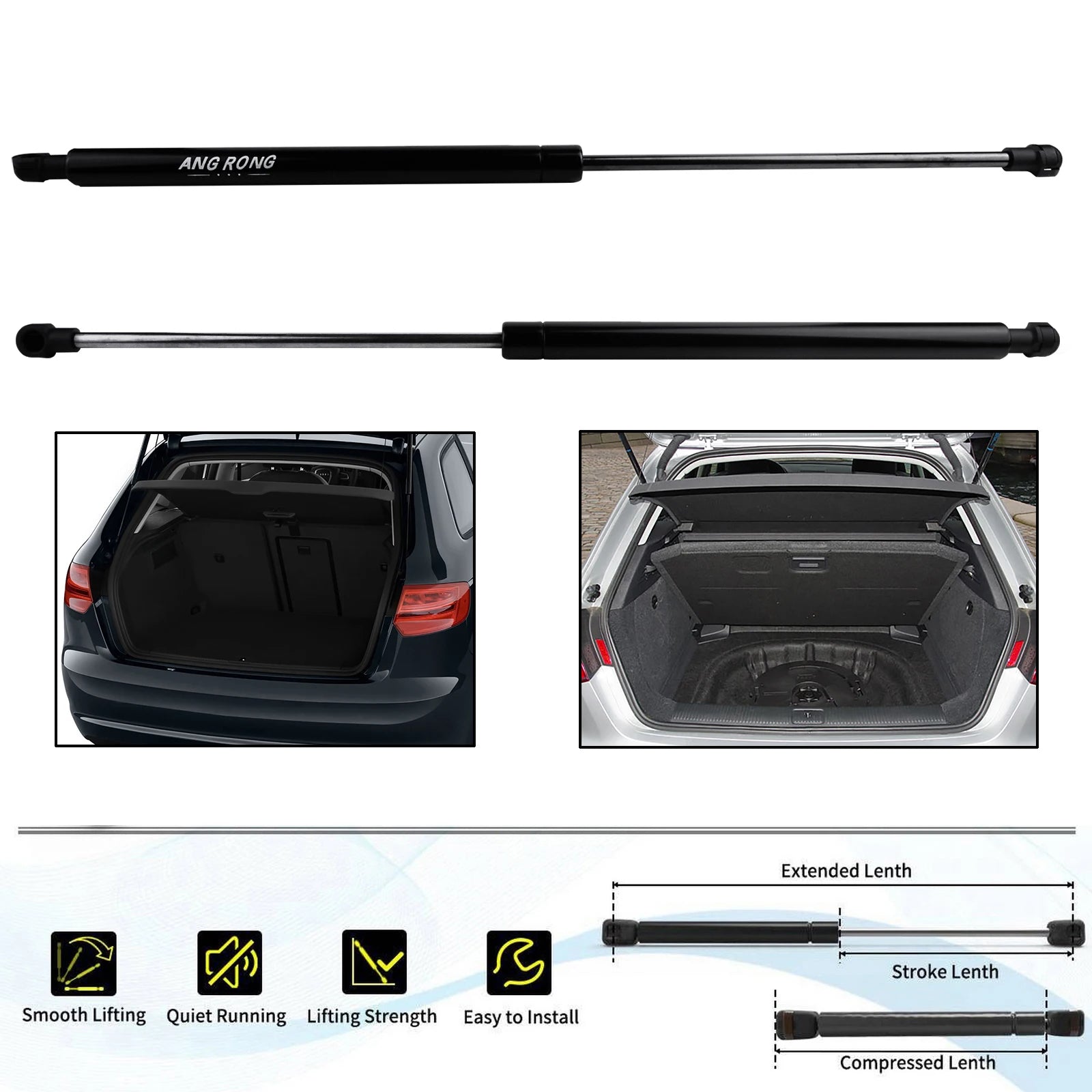Construído em aço durável com um acabamento preto, o par é projetado para suportar uso frequente e resistir à corrosão. Eles são adequados para ambos os lados da porta-truque traseira, garantindo suporte equilibrado em todo o hatch. A instalação destes amortecedores ajuda a prevenir batidas na porta-truque, reduz a tensão nas suas costas e nas dobradiças, e mantém as tarefas de carga e descarga suaves e seguras—seja a carregar compras, bagagens ou equipamento desportivo.