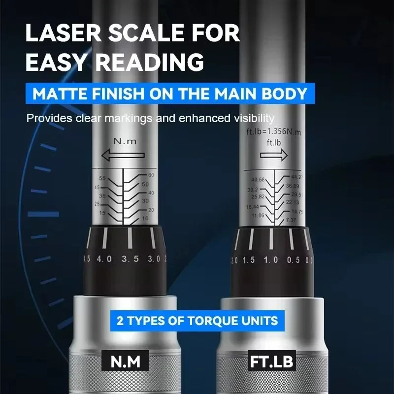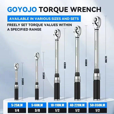 Conheça a Chave de Binário com Transmissão Quadrada Five To Sixty Nm Pro Tool da GOYOJO, concebida para profissionais e entusiastas do DIY que exigem precisão, durabilidade e versatilidade. Esta chave de binário cobre um intervalo abrangente de 5–60 N·m (com subintervalo de 5–25 N·m para tarefas de precisão), tornando-a ideal para porcas de roda automóveis, componentes de suspensão, suportes de motor, maquinaria pesada e montagem de mobiliário grande ou equipamento exterior. Construída com corpo em aço de liga de cromo vanádio e pega ergonómica em alumínio, oferece fiabilidade robusta enquanto reduz a fadiga durante longas sessões. O esticador bidirecional de 72 dentes proporciona operação suave com arco de rotação apertado de 5° para trabalho preciso em espaços reduzidos, e o sistema de libertação rápida acelera as mudanças de soquetes para manter o ritmo. Um generoso alcance de 565 mm ajuda a aceder a fixadores de difícil acesso, enquanto a escala gravada profundamente e resistente ao desgaste mantém-se clara mesmo com uso frequente. O intuitivo ajuste de binário em três passos — Puxar, Rodar, Voltar — simplifica os ajustes para que passe menos tempo a adivinhar e mais tempo a construir. Cada ferramenta GOYOJO é submetida a rigorosos testes de calibração para garantir desempenho preciso logo ao sair da caixa. Todo o equipamento eletrónico e mecânico vendido pela InterCyprus para países da UE é certificado CE e tem garantia de dois anos. Desde 2002, intercyprus.com representa qualidade e fiabilidade.