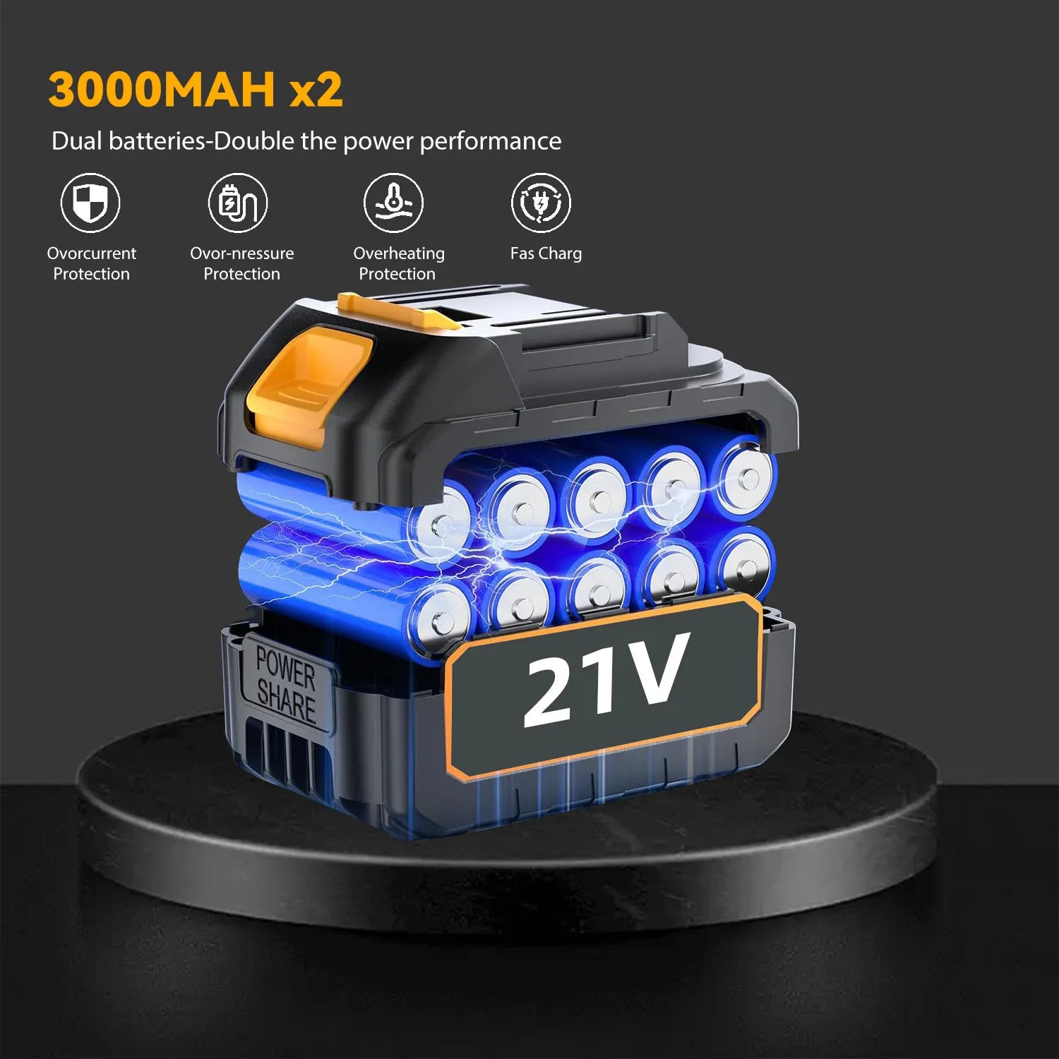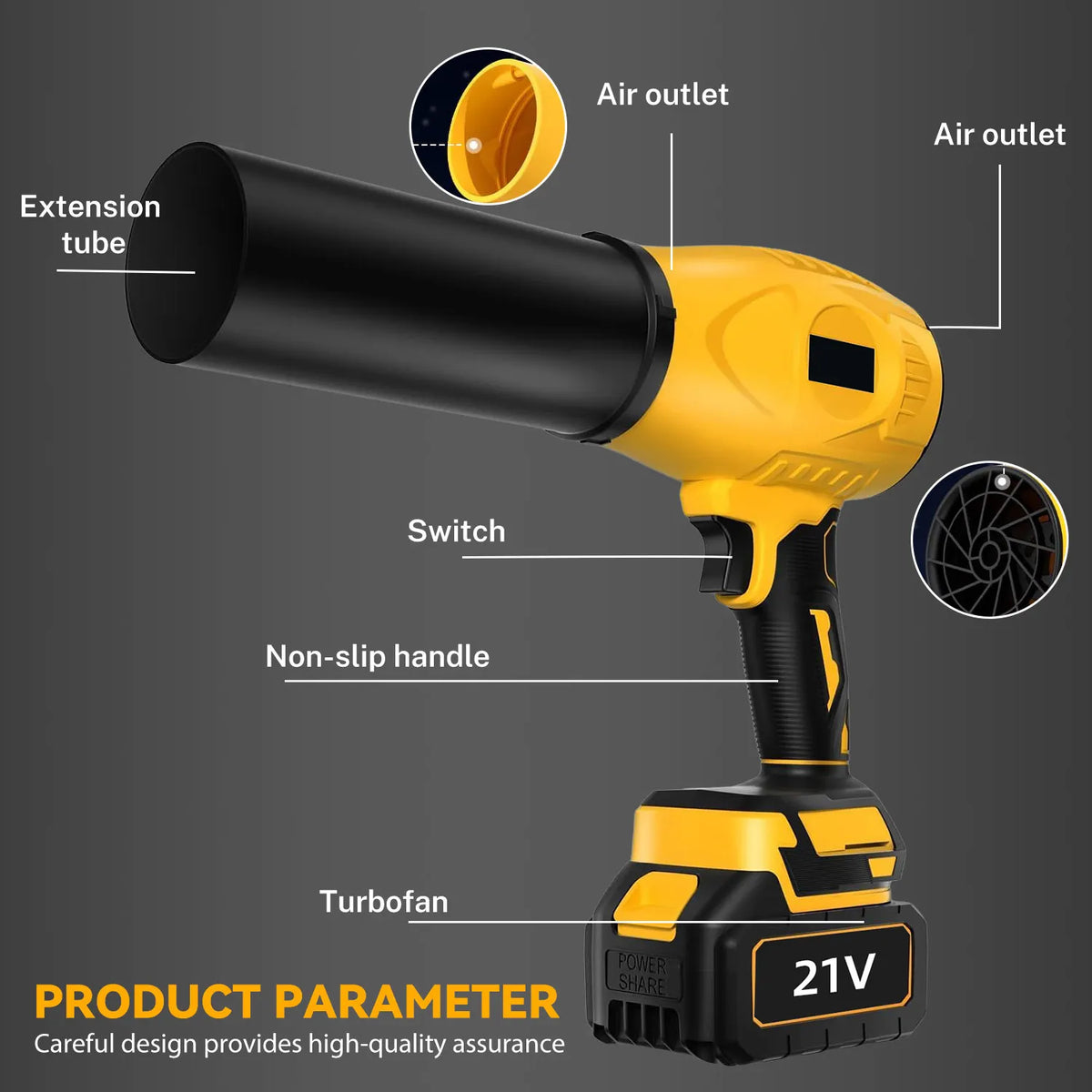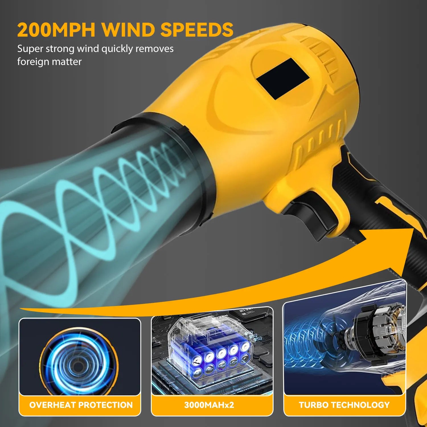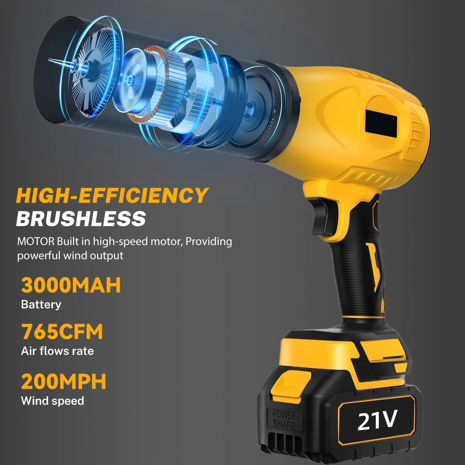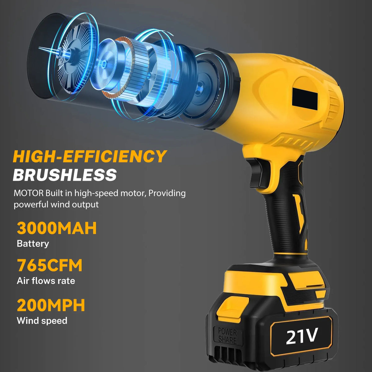 Conheça o Soprador Sem Fios de 3000W com Motor Sem Escovas, uma solução poderosa e portátil para uma limpeza rápida do jardim. Construído em torno de um motor sem escovas de 18V, ele entrega até 30.000 RPM e velocidades do vento de até 200 m/s, tornando o trabalho rápido de folhas, poeira e detritos sem a complicação de cabos. Com apenas 1,35 libras, este soprador portátil é projetado para operação com uma mão, para que você possa alcançar cantos, escadas e espaços apertados com facilidade. Um bico estendido de 8,2 polegadas expande seu alcance, permitindo que você enfrente tanto fendas estreitas quanto áreas maiores em menos tempo. Duas baterias de 3,0Ah mantêm você trabalhando por mais tempo, e um carregador rápido faz com que você volte à ação rapidamente. A proteção de temperatura embutida ajuda a manter a ferramenta segura durante o carregamento e a operação, enquanto indicadores simples vermelhos/ verdes fornecem status de relance. Perfeito para limpeza de jardins, poeira de garagens, manutenção de pátios e outros trabalhos de acabamento rápido em casa.