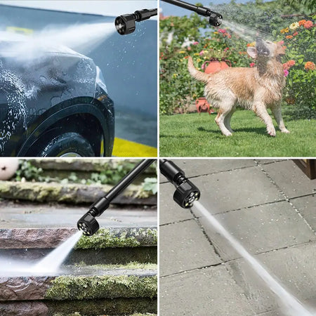 - Bocal de seis padrões mais uma mangueira de água de 5 metros facilitam a limpeza de jantes, rodas, chassis e superfícies maiores sem necessidade de recarga.