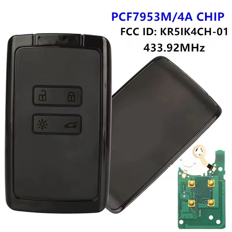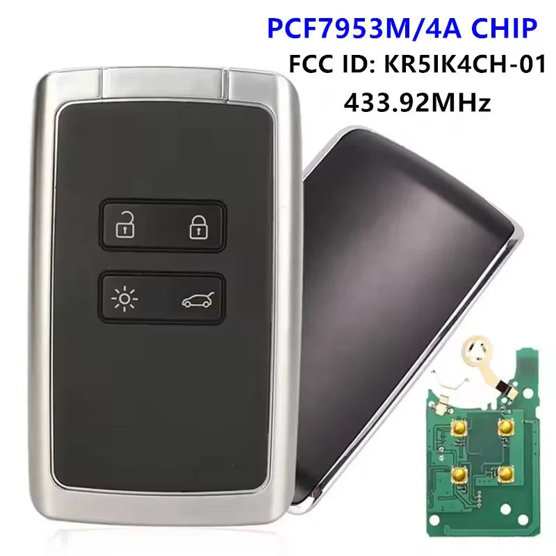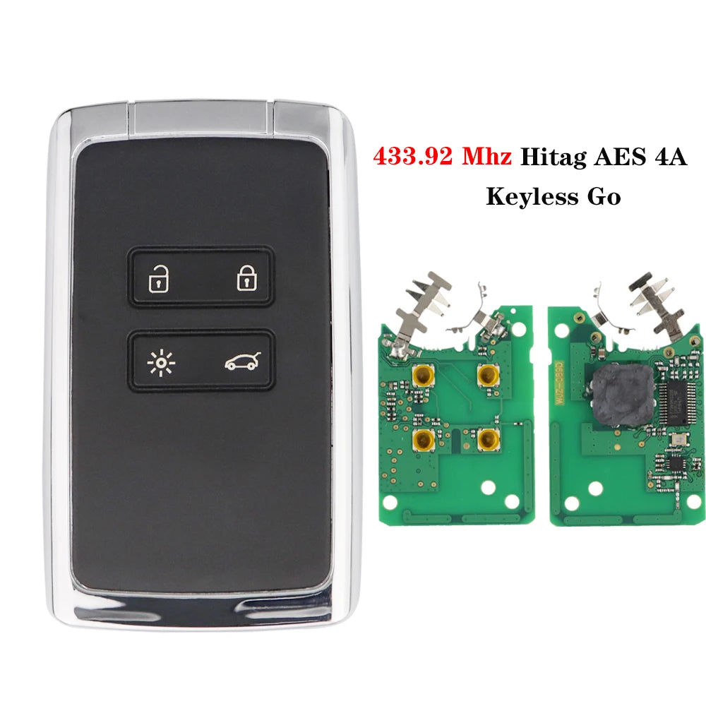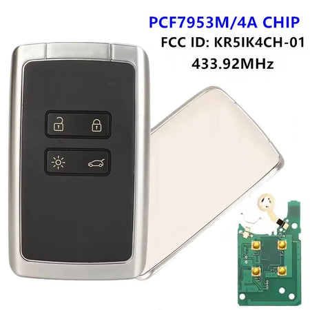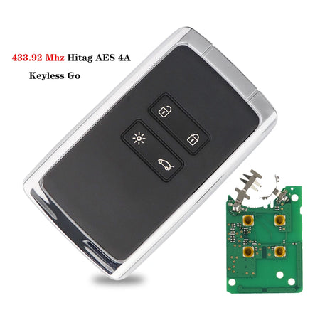 Chave Remota Fob para Renault Megane 4 433.92MHz com Chip Transponder 4A e Keyless Go