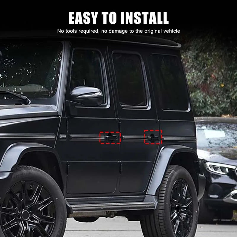 Melhore o seu Mercedes-Benz G-Class W465 (2025+) com as 5 Peças de Coberturas Exteriores para Puxadores em Fibra de Carbono Real. Este conjunto inclui cinco autocolantes decorativos de fibra de carbono real de alta qualidade, concebidos para proteger e valorizar os puxadores das portas do seu carro. Fabricadas numa fábrica certificada ISO 9001, estas coberturas oferecem um aspeto premium de fibra de carbono com material durável e leve. São fáceis de instalar e protegem os puxadores contra riscos e desgaste diário, ao mesmo tempo que conferem ao seu SUV um toque moderno e arrojado que combina com o seu espírito robusto. Uma melhoria inteligente e não permanente para proprietários que desejam uma atualização semelhante à de fábrica sem alterar o hardware original.