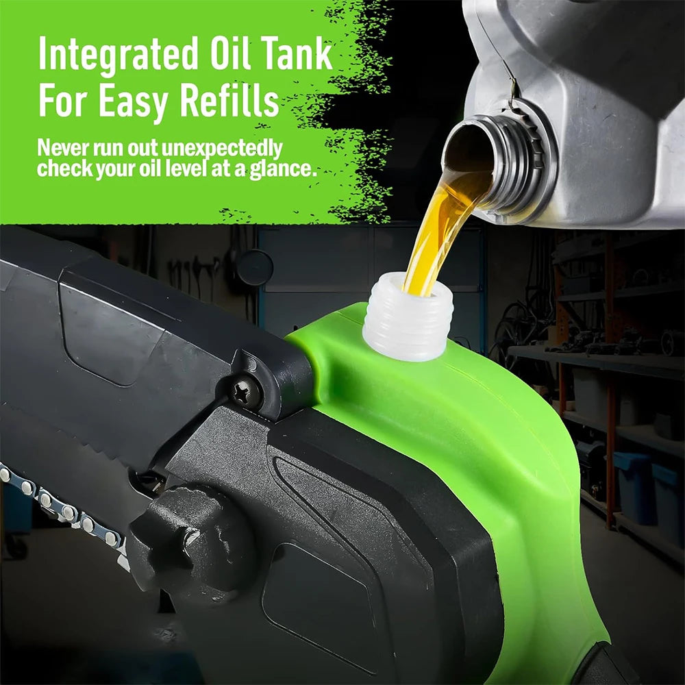 Experimente uma poda poderosa com a Serra de Cadeia Mini Sem Fios de 6 Polegadas com 2 Baterias. Construída com um motor sem escovas 4815 atualizado e uma saída de 700W, esta serra compacta oferece um torque impressionante, cortes mais suaves e maior durabilidade. A capacidade de corte de 6 polegadas lida com ramos e troncos de até 6 polegadas com facilidade, tornando a poda, o trabalho leve em madeira DIY e o trabalho no quintal mais rápidos e limpos. Pesando 6.2 libras e projetada para montagem rápida em menos de um minuto, é perfeita para proprietários de casas, jardineiros e entusiastas de DIY que buscam potência portátil sem sacrificar o desempenho.