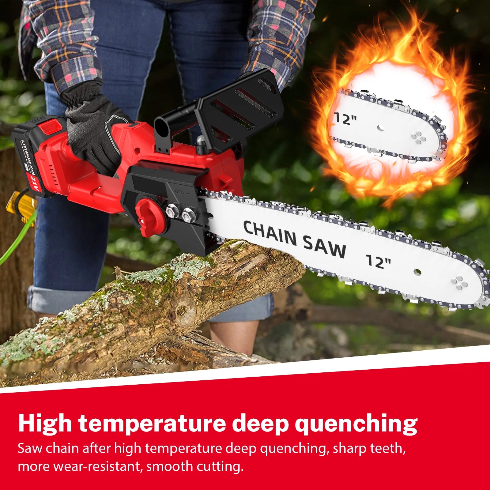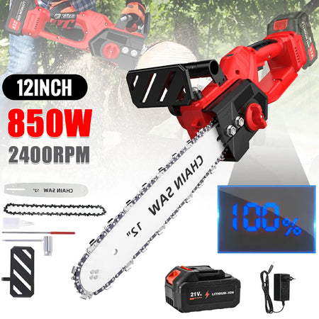 - Pacote 21: 1 motosserra, 1 corrente de motosserra, 1 defletor, 3 ferramentas, 1 bateria, 1 carregador