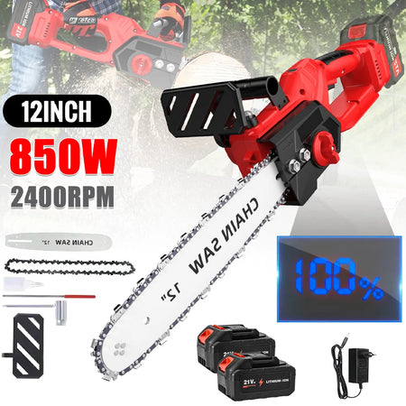 - Pacote 31: 1 motosserra, 1 corrente de motosserra, 1 defletor, 3 ferramentas, 2 baterias, 1 carregador