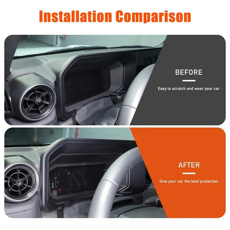 O acabamento preto mate integra-se perfeitamente com os interiores de fábrica, resistindo ao desbotamento e às impressões digitais para um aspeto limpo e premium. É uma atualização prática e de baixa manutenção que ajuda a preservar a aparência do seu tablier e reduz a necessidade de repolimento ou substituições dispendiosas ao longo do tempo.
