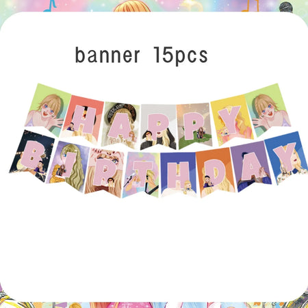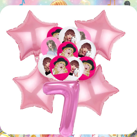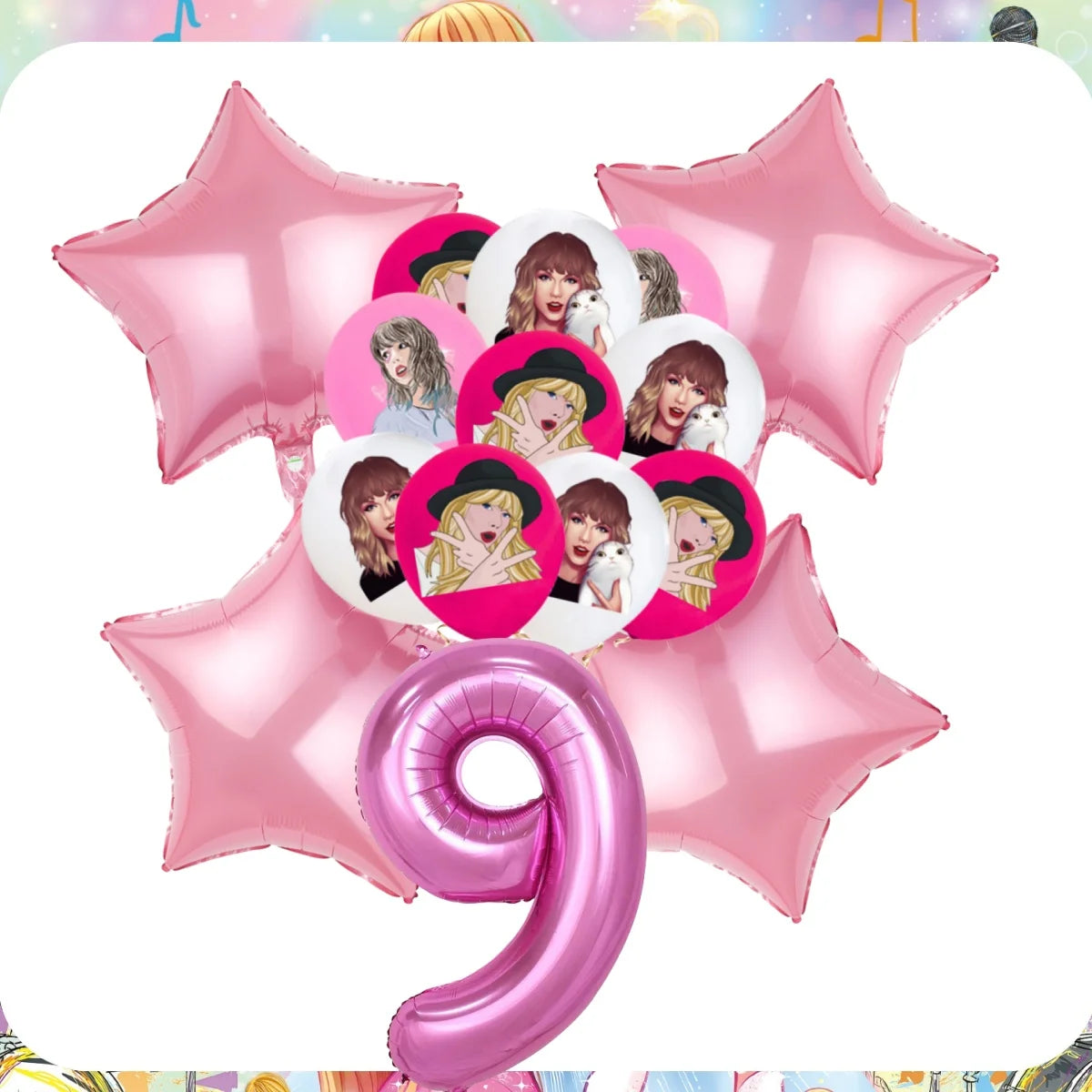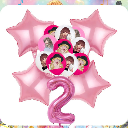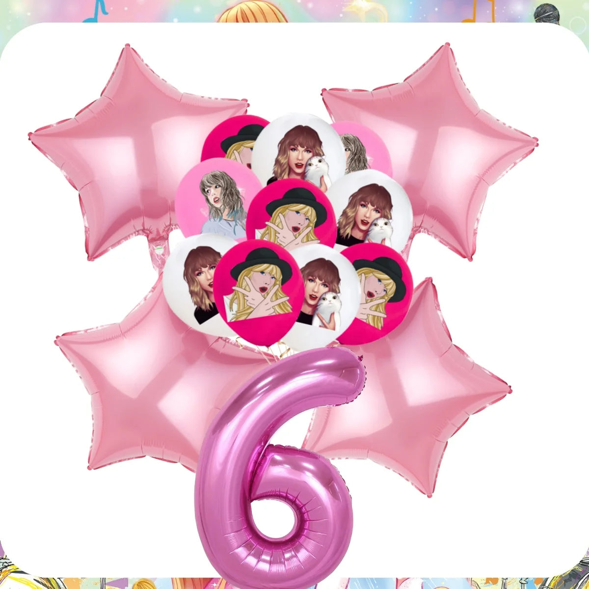 Celebre com estilo com este conjunto de decoração vibrante, perfeito para qualquer ocasião especial. Abrace os temas alegres de Taylor Swift, tornando a sua festa de aniversário um evento memorável para todas as idades.