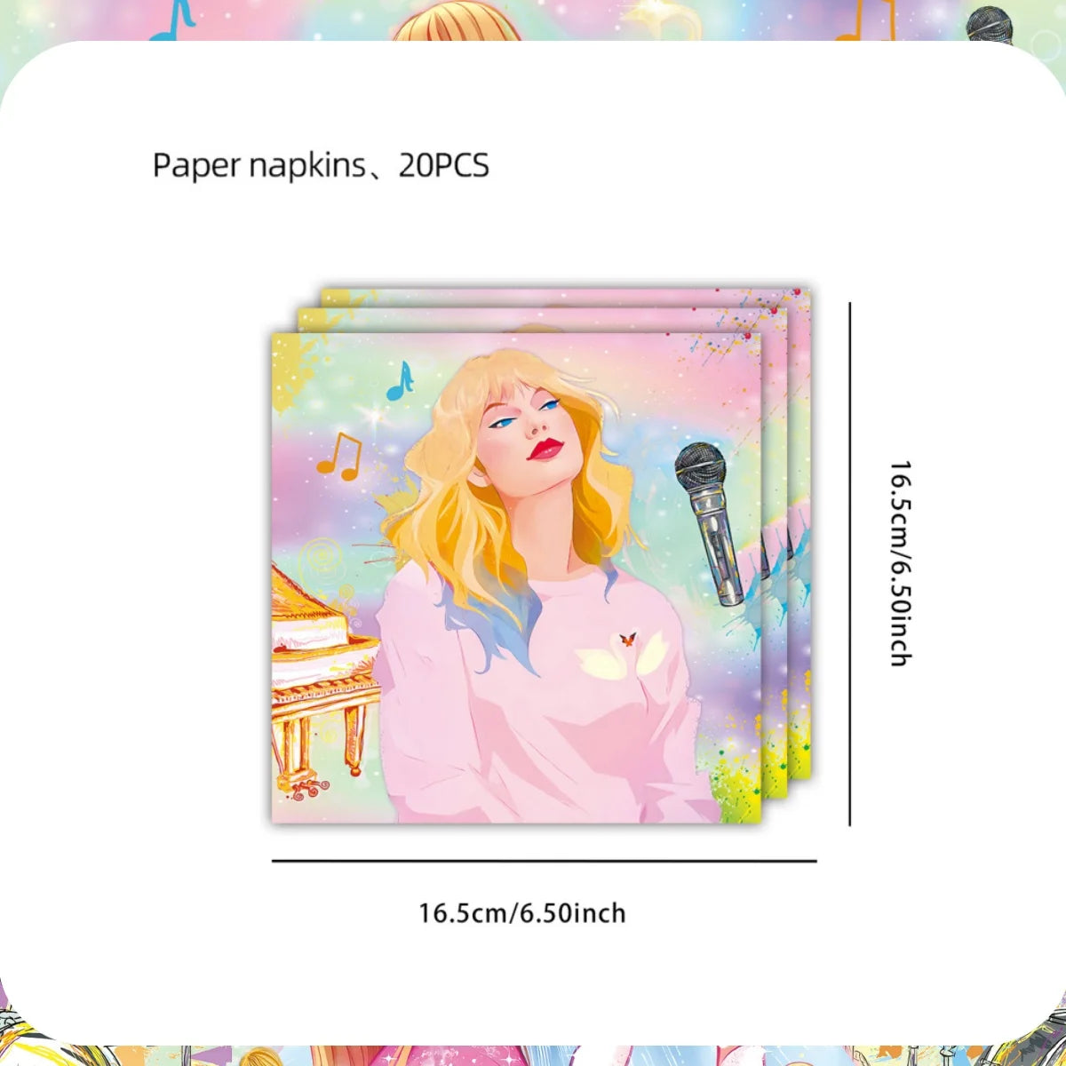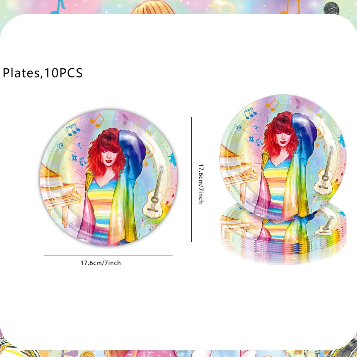 Conjunto de Decoração para Festa de Aniversário da Taylor Swift - Talheres e Suprimentos Descartáveis
