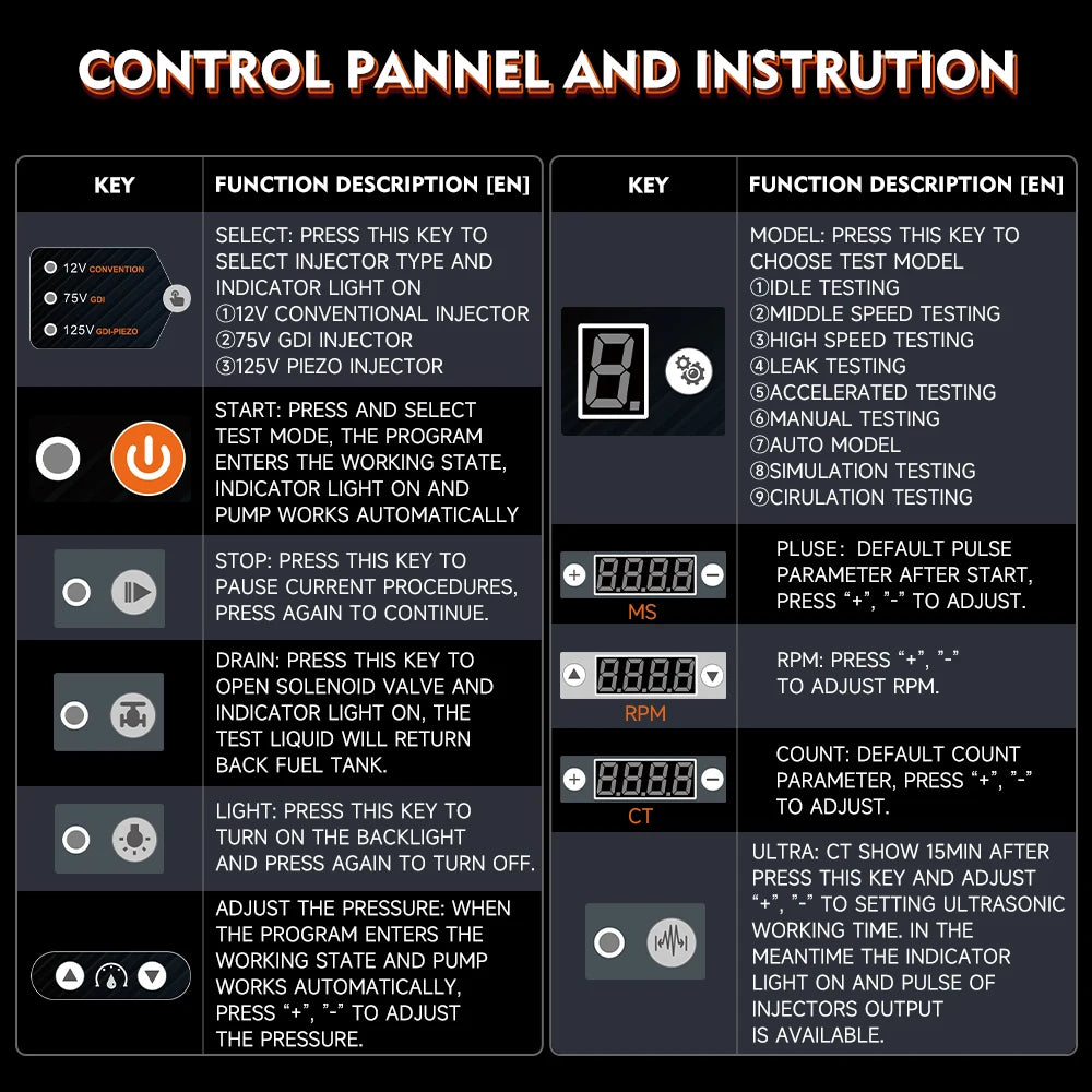 - Tipo: Testador de injetores de combustível GDI Piezo & limpador ultrassónico