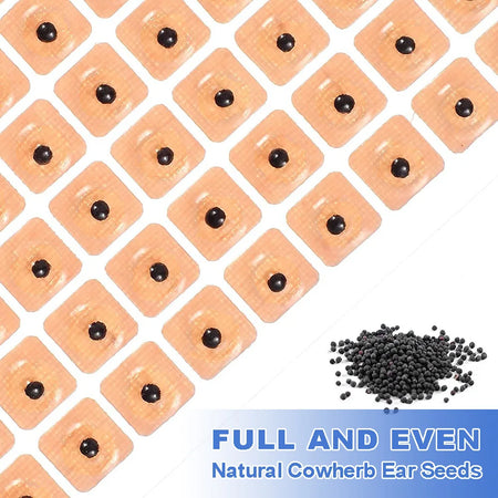 - Alivie a tensão e promova o relaxamento estimulando pontos auriculares com sementes de vaccaria e grãos de massagem.