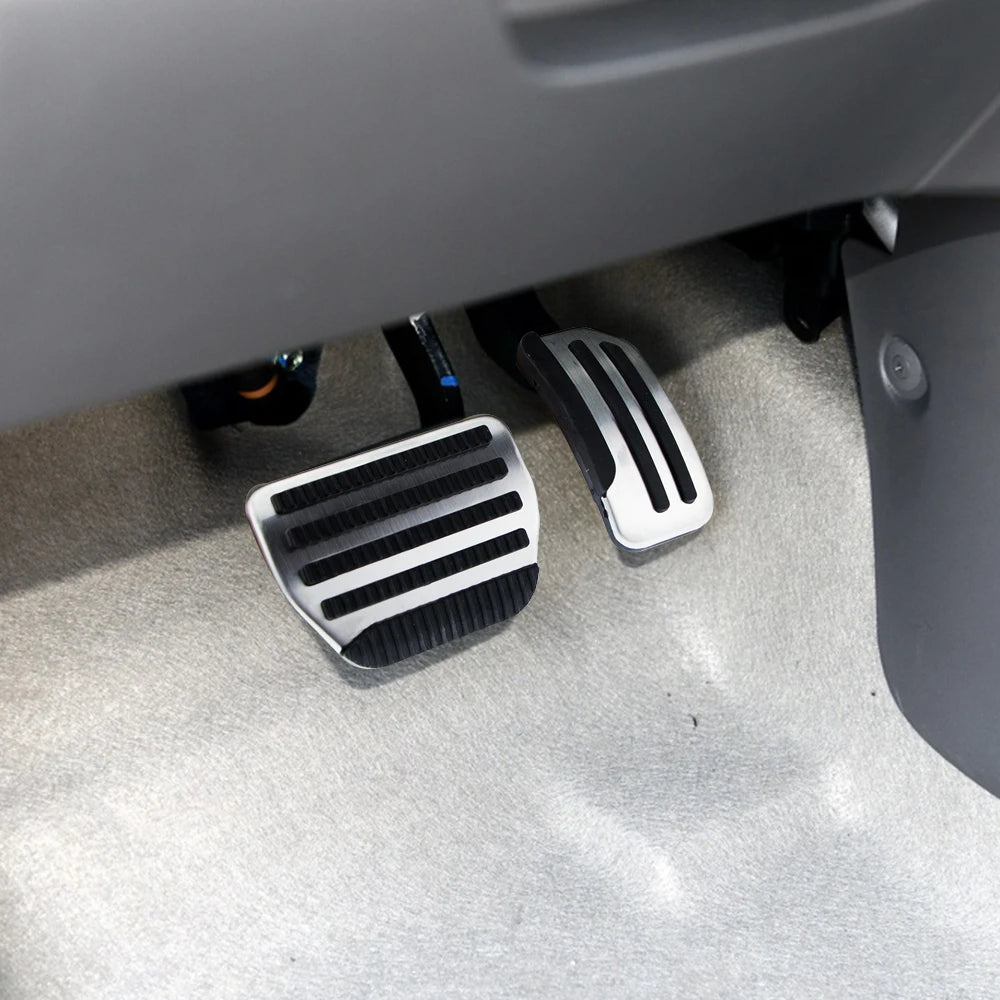 Atualize o interior do seu Nissan com um conjunto de coberturas de pedal de pé em aço inoxidável durável, projetado para um ajuste preciso no mercado de acessórios. Este acessório de grau prateado adiciona um acabamento elegante e desportivo aos pedais de travão, acelerador e (quando aplicável) embraiagem, elevando tanto o estilo quanto a aderência. É projetado para integrar-se com os modelos Nissan Tiida Livina de 2011 a 2015, bem como Nissan Sylrh 2014 e Nissan Sunny 2014–2015, proporcionando um visual coeso que complementa o seu painel e pedais. O prateado de alto contraste com detalhes em preto cria uma superfície legível e tátil, ajudando você a encontrar e pressionar os pedais rapidamente, mesmo em baixa luminosidade ou condições climáticas adversas.
