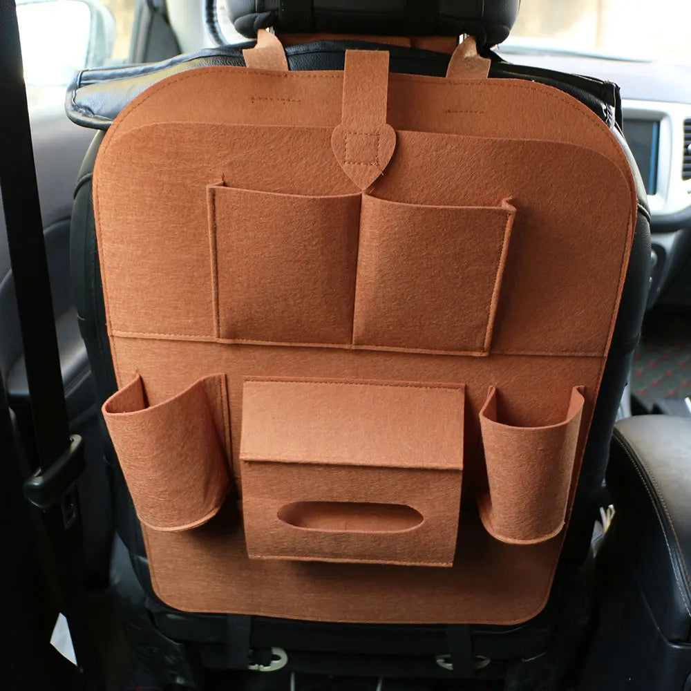Organizador de Costas para Banco de Carro em Lã com Ajuste Universal e Suporte para Copo