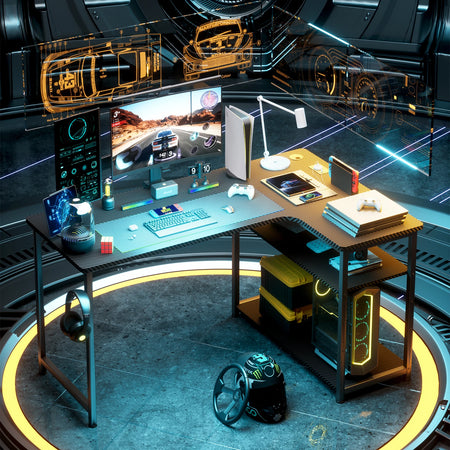 - Maximize o espaço do canto: Use o design em L para criar uma área de trabalho grande e eficiente em espaços pequenos, perfeito para escritórios domésticos ou setups de gaming.