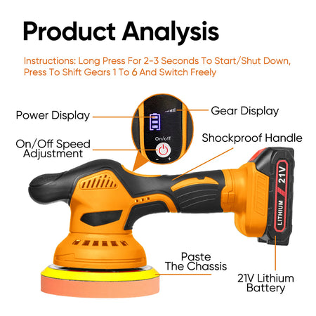 O design do eixo excêntrico e o polimento por vibração garantem que a cera seja profundamente absorvida na superfície para um brilho excelente, enquanto ajudam a minimizar danos à pintura. A conveniência sem fios significa que você pode trabalhar dentro ou fora de casa sem complicações, e as bobinas de cobre resistentes ao calor com um sistema de refrigeração eficiente mantêm a ferramenta funcionando por mais tempo entre as cargas. Com formato ergonômico e um cabo de borracha antiderrapante, é ideal para encerar, polir e remover arranhões em carros, bem como polir pisos e móveis.