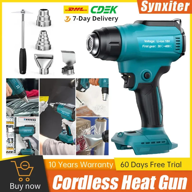 Experimente o poder de aquecimento portátil com a Pistola de Calor Sem Fios para Makita 18V. Esta versátil pistola de ar quente é projetada para entusiastas de DIY e profissionais, oferecendo aquecimento rápido em 2–3 segundos e temperaturas ajustáveis de 400°C e 550°C. Com um motor de 350W e até 7 CFM de fluxo de ar, é perfeita para encolhimento de calor, remoção de tinta, remoção de etiquetas, envelopamento em vinil e descongelamento de tubos congelados. O design sem fios permite que você trabalhe em qualquer lugar—dentro de casa, na oficina ou ao ar livre—sem cabos que o prendam a uma tomada. A operação com bateria utiliza pacotes de lítio-ion Makita 18V (não incluídos), como BL1830, BL1850, BL1850B, BL1860 ou BL1815. Nota: as baterias não estão incluídas. A ferramenta inclui quatro bicos substituíveis para otimizar o desempenho em diferentes tarefas, juntamente com acessórios extras para uso em para-brisas e limpadores. Para segurança, a unidade possui proteção contra sobrecarga e desligamento automático em caso de superaquecimento. Todo o equipamento, dispositivos e máquinas eletrônicas e mecânicas vendidos pela InterCyprus para países da UE são certificados CE e têm uma garantia de dois anos. Desde 2002, intercyprus.com tem sido confiável pela qualidade e fiabilidade.