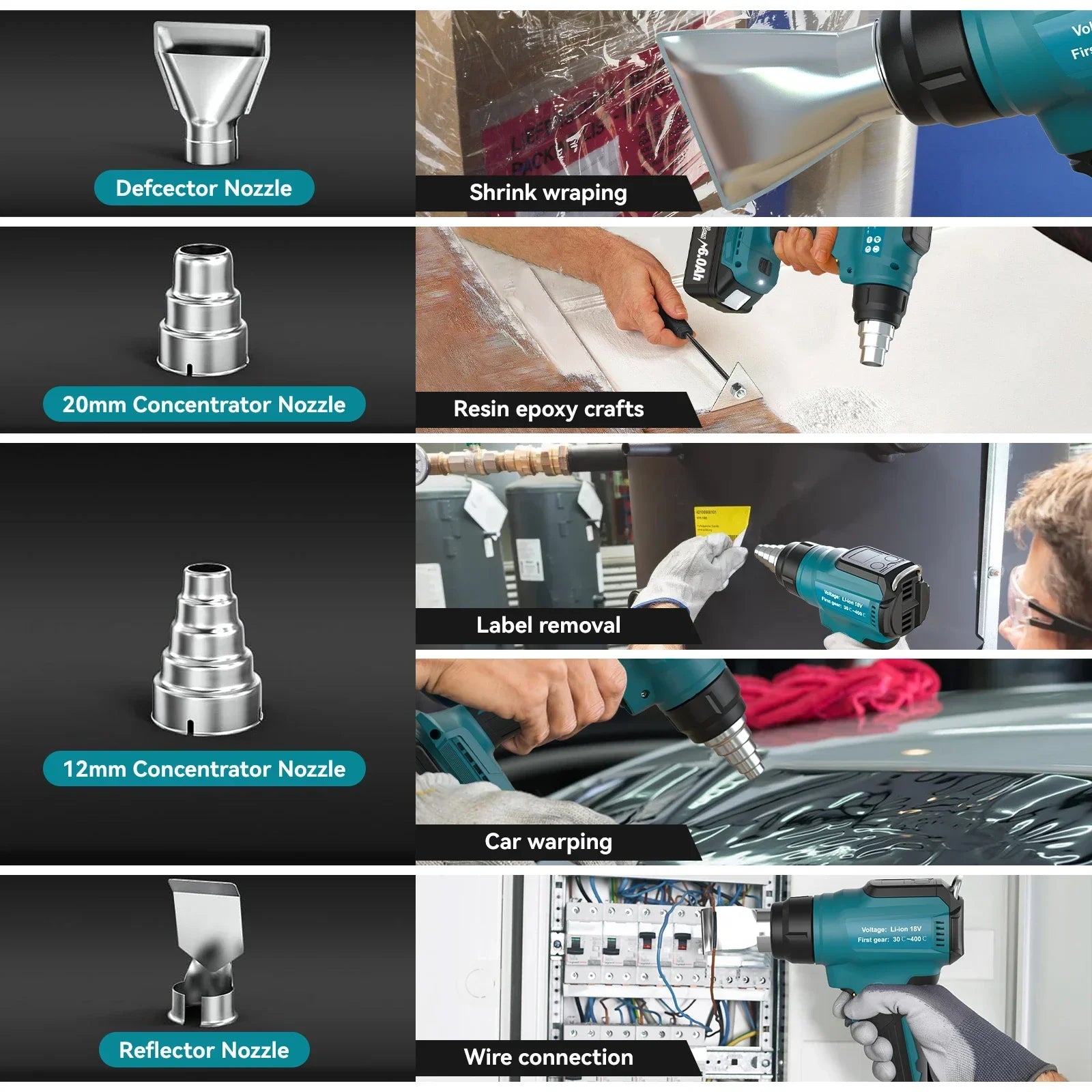 Pistola de Calor Sem Fios para Makita 18V, Temperatura Ajustável, 4 Bicos