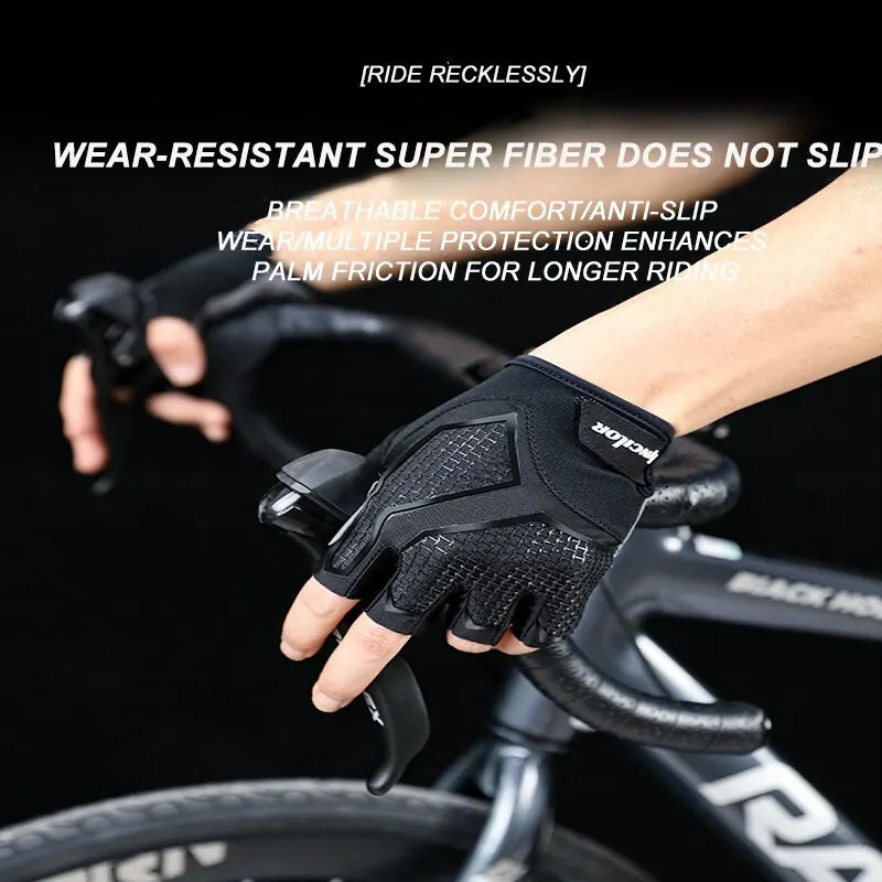 Luvas de Ciclismo de Meio Dedo com Almofadado em Gel de Silicone, Antiderrapantes, Amortecedoras, Poliéster e Pele Sintética