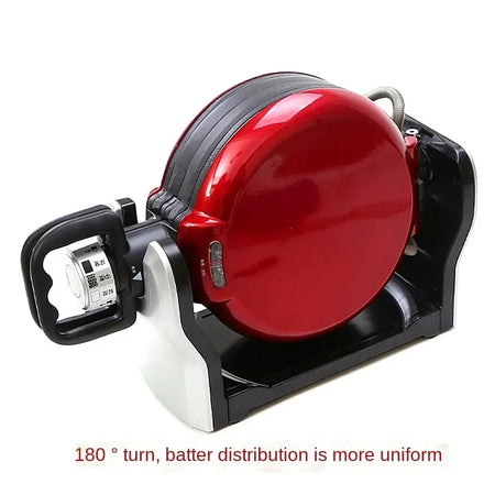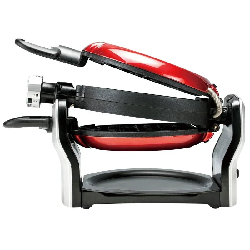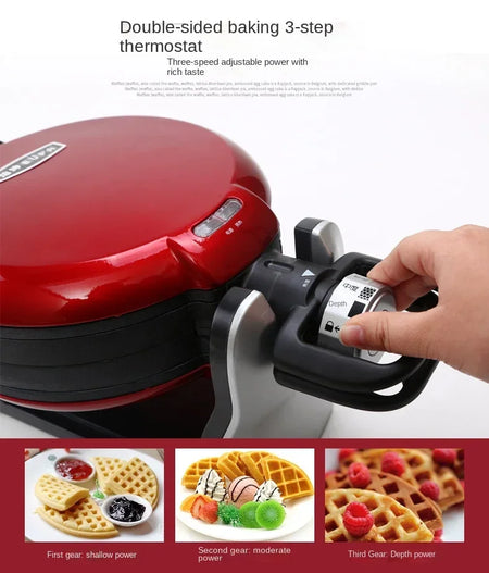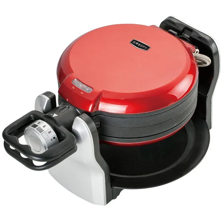 Máquina de Waffles de Dupla Face HAOYUNMA com Termostato Ajustável Superfície Antiaderente Placa Giratória Vermelha Modelo TSK2909BW
