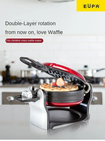 Desfrute de waffles com qualidade de café e muito mais em casa com a Máquina de Waffles com Aquecimento Duplo HAOYUNMA (Modelo TSK-2909BW). Este aparelho vermelho vibrante proporciona um dourado uniforme em ambos os lados graças ao seu aquecimento duplo, enquanto a placa rotativa permite um controlo preciso sobre a textura e o ponto de cozedura. O termóstato ajustável permite-lhe definir o crumble perfeito — crocante por fora, tenro por dentro. A superfície de cozedura antiaderente garante uma libertação fácil e uma limpeza rápida, para que possa passar mais tempo a desfrutar das suas delícias e menos tempo a esfregar panelas. Com placas intercambiáveis para Máquina de Waffles, Máquina de Bolos e Máquina de Bolachas, pode alternar entre waffles de pequeno-almoço e sobremesas em momentos — sem confusão.