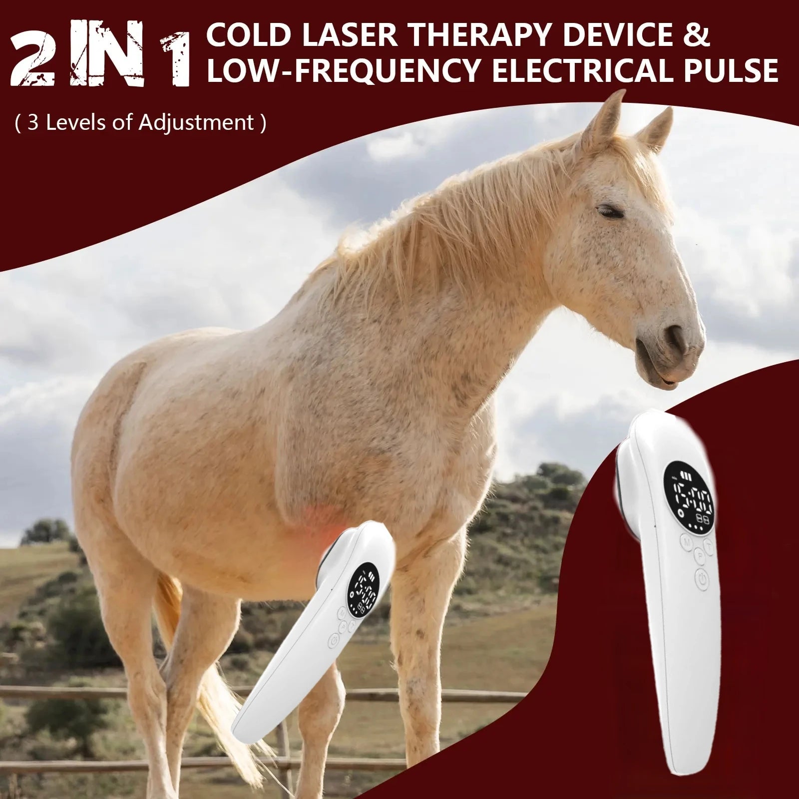 Aplicações ideais incluem alívio da dor musculoesquelética (dor de artrite em articulações como carpo, jarrete e joelho; tendinite/distensões ligamentares; dores musculares e recuperação pós-competição), suporte ao sistema locomotor (controlo da dor da laminite quando usado juntamente com um plano veterinário; rigidez articular; problemas de mobilidade) e recuperação pós-operatória ou de lesões (dor em incisões cirúrgicas após remoção dos pontos; contusões/hematomas com tratamento iniciado 48 horas após a lesão).