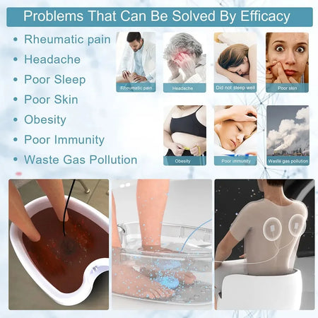 Concebido para equilibrar os caminhos de energia e estimular os sistemas imunitário e linfático, o modo de desintoxicação por iões negativos do dispositivo utiliza chips avançados e exibe a concentração de iões no ecrã (tipicamente 2200–2600 ppb). Mergulhe durante cerca de 30 minutos para relaxar após um longo dia enquanto proporciona ao seu corpo um impulso suave e natural de desintoxicação. A tecnologia usa iões para ajudar a neutralizar toxinas e apoiar os processos naturais de eliminação do corpo.