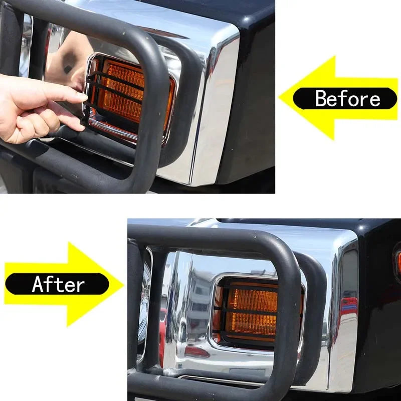 Melhore o aspeto do seu Hummer H2 2003-2009 com o Autocolante de Abajur do Sinal de Mudança do Para-choques Frontal do Hummer H2 em Preto. Fabricado em aço inoxidável durável e acabado num preto arrojado, este acessório elegante para o para-choques frontal adiciona um toque robusto e premium enquanto ajuda a proteger a borda do para-choques contra riscos e desgaste. O autocolante do abajur é desenhado especificamente para os modelos H2 2003-2009 e instala-se rapidamente com uma fita adesiva automóvel forte na parte de trás — não é necessário furar. A fabricação certificada ISO 9001 garante qualidade e consistência, tornando esta uma atualização fiável para o seu veículo.