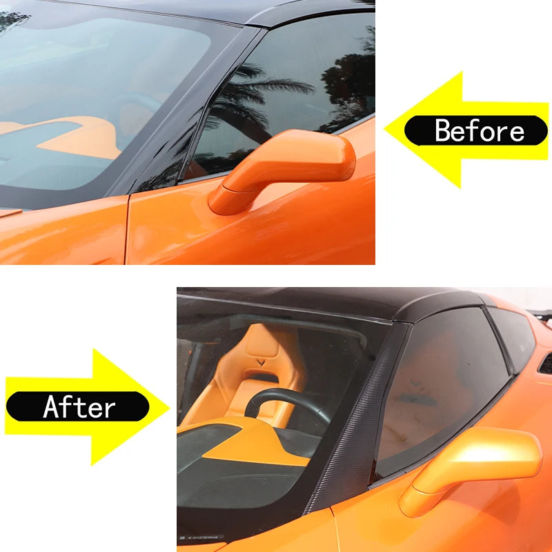 Cobertura de acabamento em PVC de fibra de carbono para pilar A para Chevrolet Corvette C7 de 2014 a 2019, autocolante para vidro do para-brisas com fita adesiva