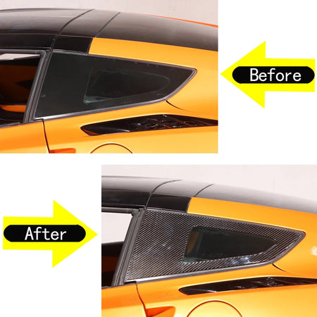Atualize o seu Chevrolet Corvette C7 2014-2019 com o Autocolante de Cobertura de Vidro do Triângulo Traseiro em Fibra de Carbono para Corvette C7. Fabricado em Fibra de Carbono Real (Macia), esta cobertura decorativa em duas peças adiciona um aspeto premium inspirado nas corridas enquanto protege a área do vidro do triângulo traseiro contra riscos e desgaste. Produzido numa fábrica certificada ISO9001, este kit é 100% novo com caixa e disponível em Vermelho ou Fibra de Carbono para combinar com o seu estilo. A instalação com adesivo na parte de trás torna-o uma atualização rápida e segura sem necessidade de ferramentas especiais.