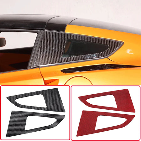 - 2 peças – Autocolantes de Cobertura de Vidro do Triângulo Traseiro para Corvette C7 (Fibra de Carbono Real, Macia; opções de cor Vermelho e Fibra de Carbono)