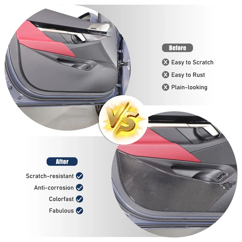 Atualize o seu BMW Série 5 G60 2024+ com o Autocolante Cheya em Fibra de Carbono Macia para Painel Anti-Chute. Esta modificação interior adiciona um acabamento premium em fibra de carbono aos painéis anti-choque das portas dianteiras, protegendo-os contra riscos enquanto realça o aspeto desportivo da cabine. Feito de fibra de carbono macia de alta qualidade, é leve mas durável, concebido para se integrar perfeitamente com o interior do veículo.