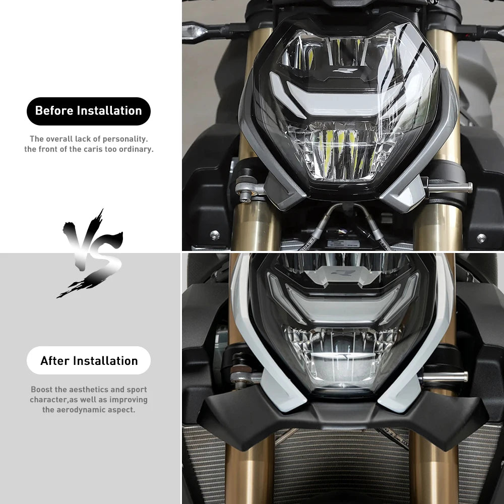 Melhore a sua BMW com o Defletor de Asa Frontal S1000R M1000R, um spoiler aerodinâmico frontal de precisão concebido para os modelos S1000R 2021–2024 e M1000R 2023–2024. Fabricado em ABS preto mate com 3mm de espessura e montado através de um suporte em aço carbono, esta asa frontal melhora tanto a estética como o desempenho. Ao canalizar o ar para o radiador e moldá-lo para um fluxo ótimo, proporciona quase 2kg de downforce na roda dianteira, oferecendo um efeito anti-wheelie, redução do shimmy em altas velocidades e travagem e direção mais suaves e estáveis nas curvas.