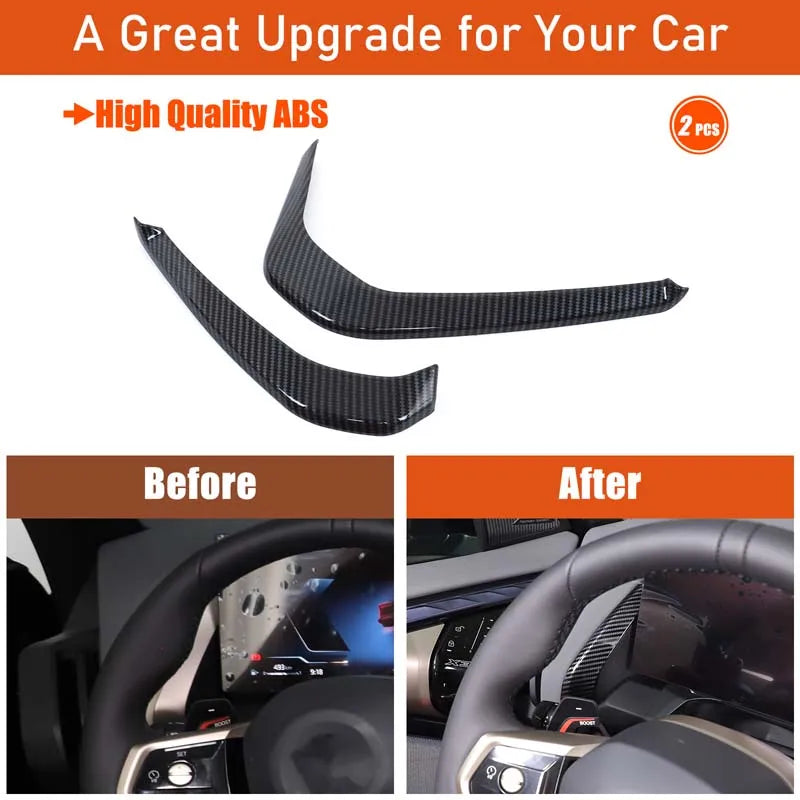 Atualize o interior do seu BMW X3 G45 2025+ com este acabamento em fibra de carbono para consola central interior. Fabricado em plástico ABS de alta qualidade e com acabamento elegante em fibra de carbono, este kit de 2 peças protege e realça a área de controlo central. Projetado para um ajuste preciso no BMW X3 G45 2025+ e fácil de instalar com um adesivo duplo forte na parte traseira. Fabricado numa fábrica certificada ISO9001 e construído para suportar o uso diário, adiciona um toque refinado e desportivo enquanto protege a consola central contra riscos e desgaste.