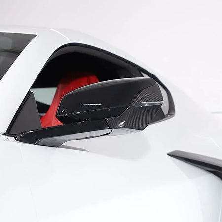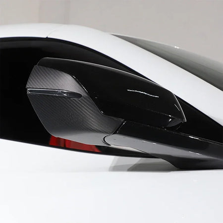 Melhore o interior do seu Chevrolet Corvette C8 com o acabamento do espelho retrovisor em fibra de carbono real. Fabricado em fibra de carbono verdadeira, este kit de acabamento inferior de espelho de 4 peças oferece um aspeto premium, inspirado nas corridas, para os modelos Corvette C8 (C8 Z51, Z06) a partir de 2020. Adiciona profundidade e um acabamento de alta qualidade à sua cabine, protegendo contra o desgaste diário na carcaça do espelho.