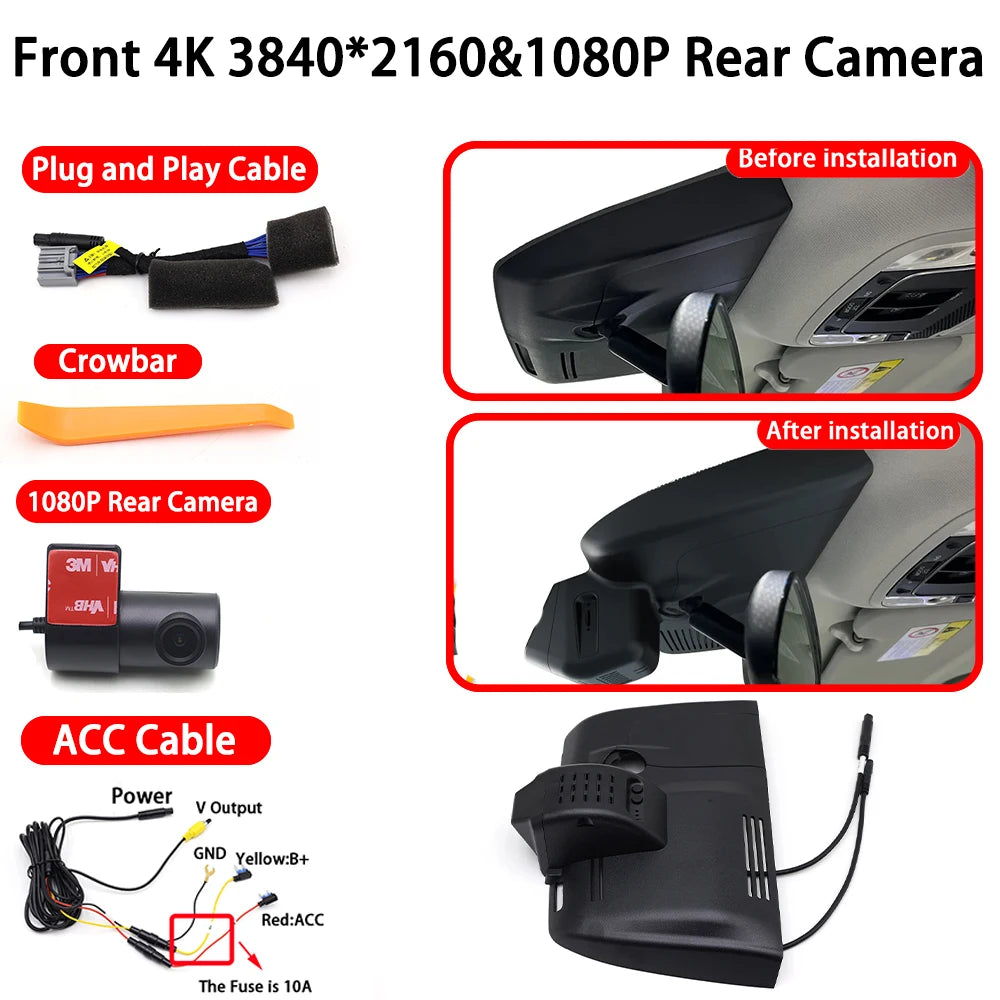 Atualize o seu Honda Breeze com uma verdadeira câmara de vigilância frontal e traseira em 4K, projetada para uma instalação fácil e rápida. Este sistema de câmara dupla grava imagens frontais ultra-nítidas em 4K (3840x2160) enquanto captura vídeo traseiro fiável em 1080P, fornecendo provas convincentes em qualquer viagem. Com WiFi para uma configuração rápida e transferência de vídeo sem complicações, pode gerir as gravações diretamente do seu telemóvel sem remover o cartão SD. Projetada para se adaptar aos modelos Honda Breeze de 2019 a 2022, esta câmara de vigilância ajuda a monitorizar as condições da estrada, proteger contra incidentes e rever momentos de condução com confiança.