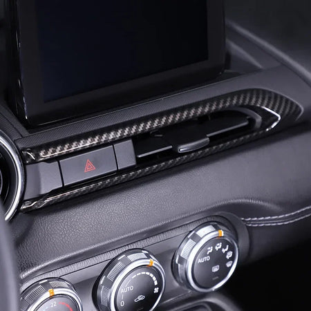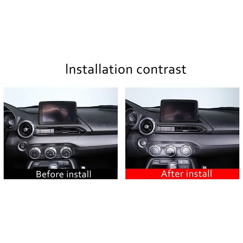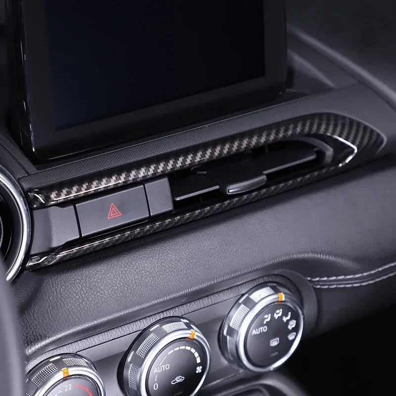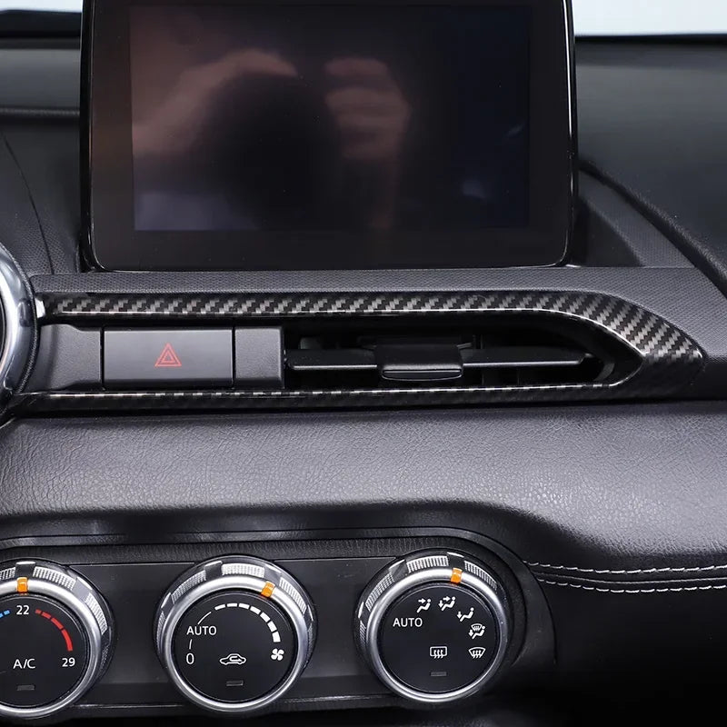 Transforme o interior do seu Mazda MX-5 com a Moldura da Saída de Ar da Consola Central Mazda MX5 em Fibra de Carbono. Esta moldura interior decorativa e protetora da cheyaCar é concebida para o MX-5 de 2016-2023, oferecendo uma atualização elegante e premium para a sua cabine. Fabricada em ABS durável com acabamento brilhante em fibra de carbono, realça a moldura da saída de ar da consola central enquanto protege contra riscos e desgaste diário.