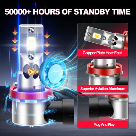 - Atualização fácil plug-and-play para soquetes H8/H9/H11/H16JP com um design compacto 1:1 mini que encaixa sem alterações no balastro.