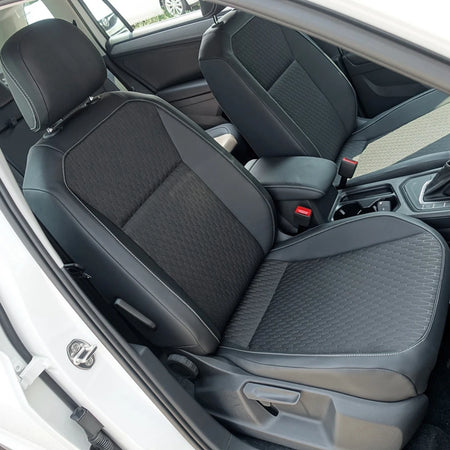 Dê ao seu Volkswagen Tiguan um interior renovado com o Conjunto de Capas de Assento em Couro Sintético Personalizadas para Volkswagen Tiguan. Este conjunto completo é um ajuste personalizado para 5 lugares, combinando estilo sem emendas com proteção prática. Feitas de couro artificial, estas capas de assento protegem os assentos de fábrica de derramamentos, manchas e desgaste diário, enquanto melhoram a cabine com um visual limpo e contemporâneo. Originado na China Continental pela Vinidname, este conjunto de capas de assento é projetado para combinar durabilidade com fácil manutenção para motoristas ocupados.