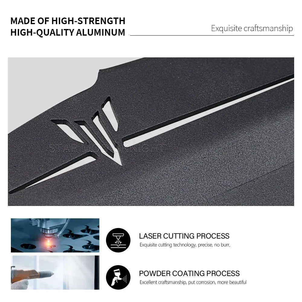 - O acabamento em alumínio preto mate é fácil de manter e combina bem com outros componentes protetores para um estilo coordenado.